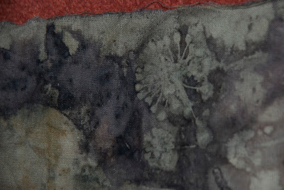 If you visit my Art blog http://tryingtocreatearteveryday.blogspot.com you will see my Eco dyeing experiments. The following imager is one l am really pleased with. Love the way the flower/seeds have shown up so well.